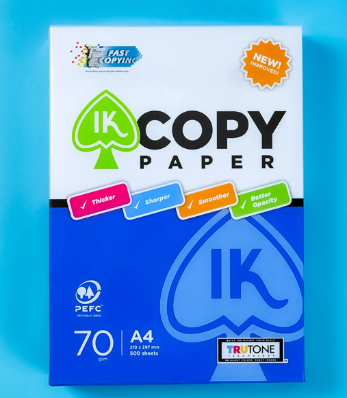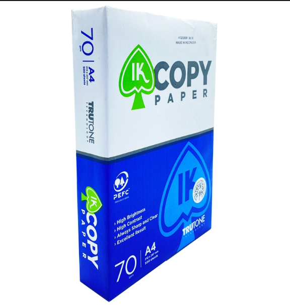 Giấy IK Copy A4 70 gsm còn gọi là giấy A4 IK Copy, IK Copy, photo copy IK, giấy IK Copypaper. Với giấy IK Copy A4 70 cũng là sự lựa chọn tuyệt vời. Bởi chất lượng giấy rất tốt, độ trắng sáng vượt trội