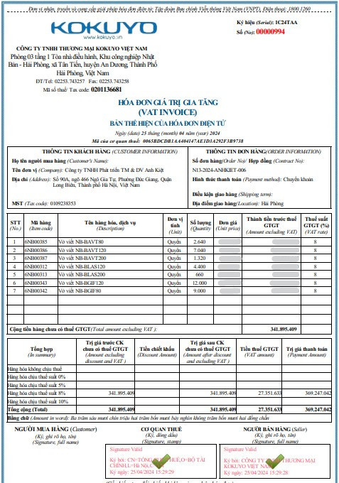 Một số hoá đơn nhập hàng năm 2024
