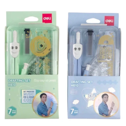 - Bộ compa được đựng trong hộp nhựa mica gọn gàng.